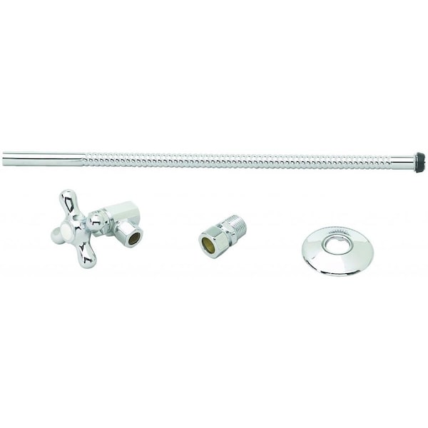 Toilet Kit W/ Stop and Corrugated Riser, Cross Handle in Polished Chrome