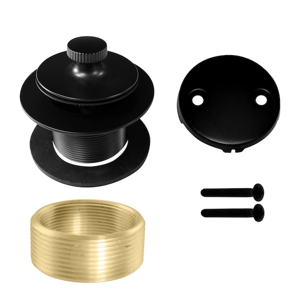 This designer twist & close waste and two hole overflow trim kit is the decorative solution and perfect finishing touch for your tub! Drain strainer sports fine thread 1-1/4 in. NPSM strainer with a 1-1/2 in. NPSM thread adapter. Push and turn stopper to close and pull again to open. You'll be able to appreciate both the beauty and performance of this item for years to come thanks to superior quality finishing and solid construction.