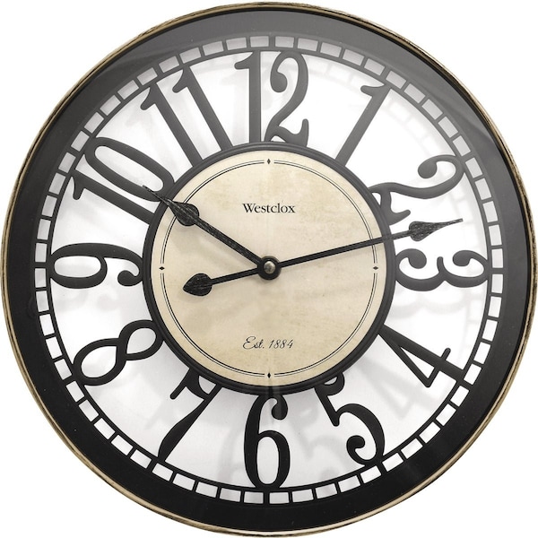 Westclox 12 Open dial with Arabic Numbers wall clock is a unique clock that would make a great addition to anywhere in your home. Add this piece to your home decor for a stylish yet simple look. The large numbers are easily visible from anywhere in the room. 1 AA battery is required not included.