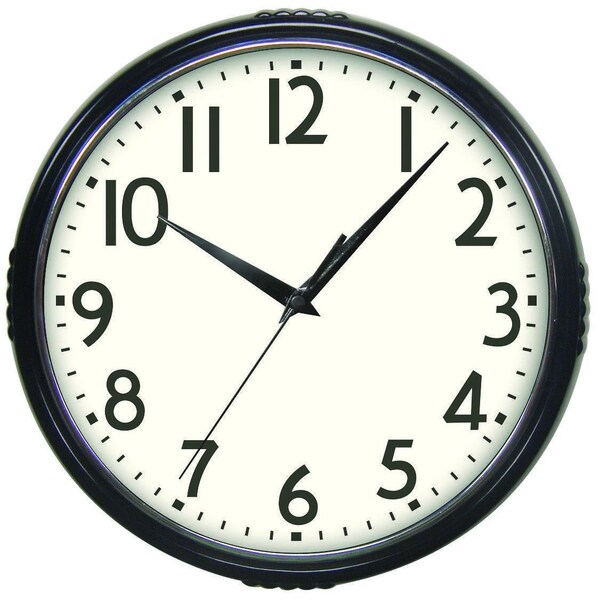 Classic 1950 Series Clock, Round, Black Frame, Plastic Clock Face, Analog