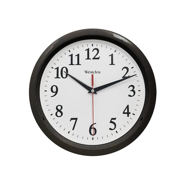 Wall clock black case, white dial black numerals, seconds hand, glass lens, quartz movement uses one 1 AA battery not included.