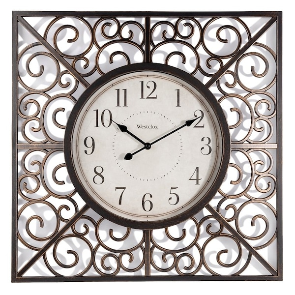 Westclox Wall Clock with Swirl, Square Shape, DigitalAnalog Analog, Plastic Frame, Vintage Frame, Glass Lens, AA Battery, 8 in Diameter, 20 in Width, 20 in Height