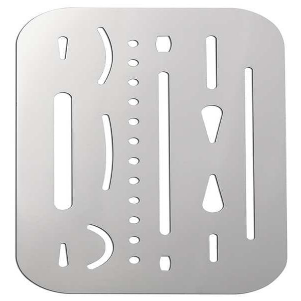 Individual Stencil, Character Type Message, Duty Light, FAA AC 150/5340-1K Compliant No, Font Various, Included Characters, Messages, and Symbols Erasure Lines, Includes Various Apertures To Mask For Exact Erasure Of Lines And Dots, Individual Character Height Not Applicable, Individual Character Width Not Applicable, Interlocking No, Interlocking Orientation Not Applicable, Material Stainless Steel, Message or Symbol Height 3 in, Message or Symbol Width 3 in, Number of Pieces 1