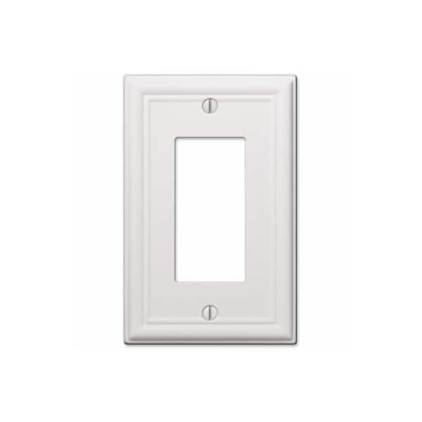 1 Rocker wall plate. Chelsea white finish. Made from Stamped Steel. This stylish wall plate adds simple elegance to your decor. Manufactured by the leader in decorative wall plates and hardware.