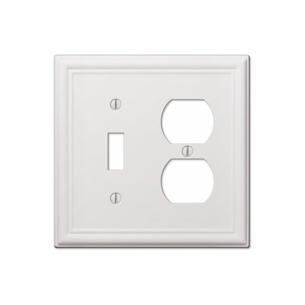 1 Toggle 1 Duplex wall plate. Chelsea white finish. Made from stamped steel. This stylish wall plate adds simple elegance to your decor. Manufactured by the leader in decorative wall plates and hardware.