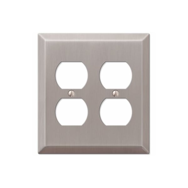 2 Duplex Outlet Century brushed nickel steel wallplate.