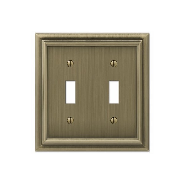 2 Toggle wall plate. Continental brushed brass finish. Made from cast metal. This stylish wall plate adds simple elegance to your decor. Manufactured by the leader in decorative wall plates and hardware.