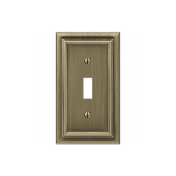 1 Toggle wall plate. Continental brushed brass finish. Made from cast metal. This stylish wall plate adds simple elegance to your decor. Manufactured by the leader in decorative wall plates and hardware.