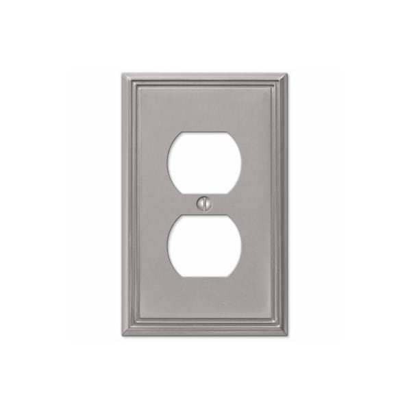 1 Toggle & 1 Duplex wall plate. Metro brushed nickel finish. Made from cast metal. This stylish wall plate adds simple elegance to your decor. Manufactured by the leader in decorative wall plates and hardware.