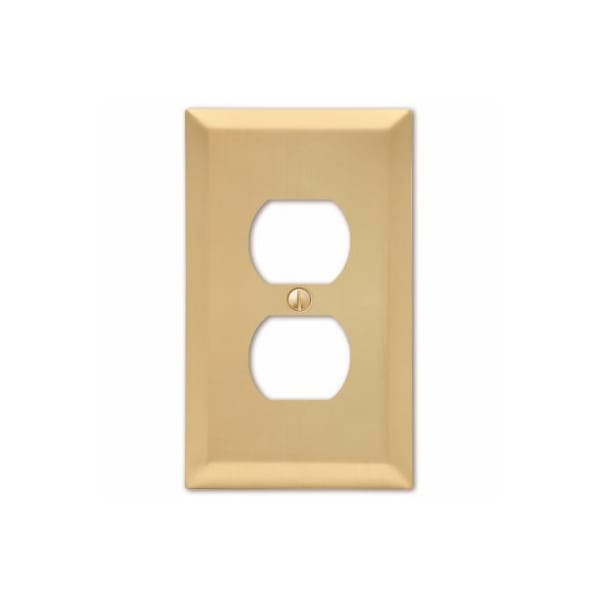 1 Duplex wall plate. Century satin brass finish. Made from stamped steel. This stylish wall plate adds simple elegance to your decor. Manufactured by the leader in decorative wall plates and hardware.