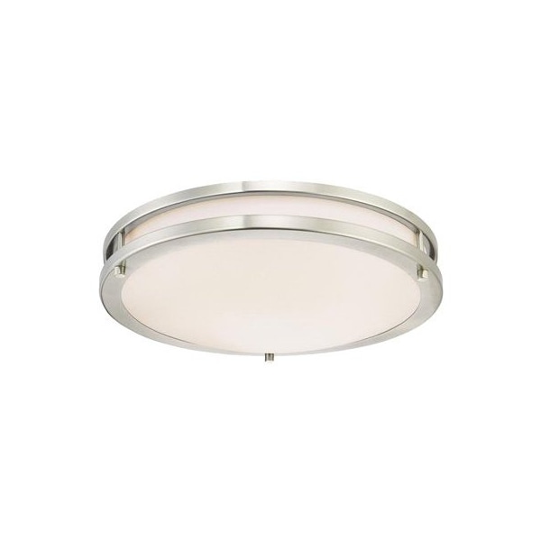 1575, 23W, Dimmable LED Flush Fixture, Brushed Nickel Flush Mount, Interior Round Acrylic Steel Shade