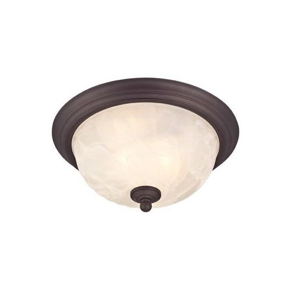 2 Light, Ceiling Fixture, Oil Rubbed Bronze Finish On Steel With White Alabaster Glass, 11 Width x 6 Height, Uses 2 Medium Base Light Bulbs, 60W Maximum, Not Included, For Exterior Use, UL Listed