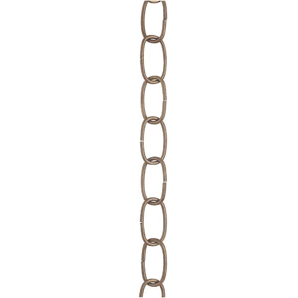 Oval fixture chain 11-gauge. Recommended for hanging light fixtures plants or extending existing chain. Hang from a beam hook or loop. Each link can be opened with fixture chain pliers to take away links or add additional links. 1 yard length.