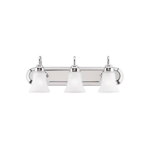 3 Light, Wall Mount, Light Fixture, Chrome Finish With Frosted Pleated Glass, Height 812, Width 24, Extends 714, Use 3 Standard Base, Soft White, A19, 100W Maximum Or Torpedo 60W Maximum