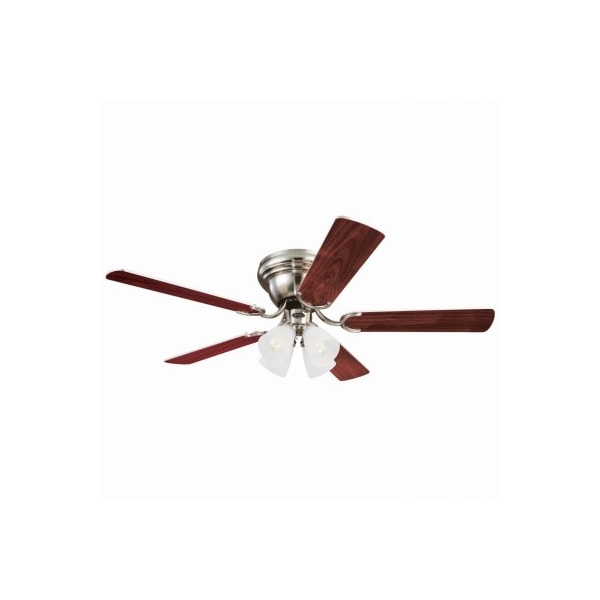 Contempra IV, 52 in, Brushed Nickel Finish, Ceiling Fan Rosewoodneutral bird's eye maple Includes light kit with 1 candelabra base light bulb