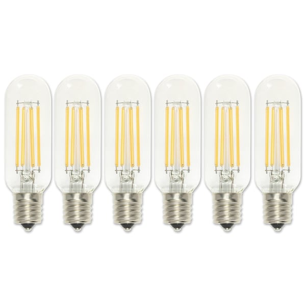 - Bulb Description: 6-Pack, dimmable, decorative T8 LED bulb, E17 intermediate base, clear finish, approved for wet locations and enclosed fixtures