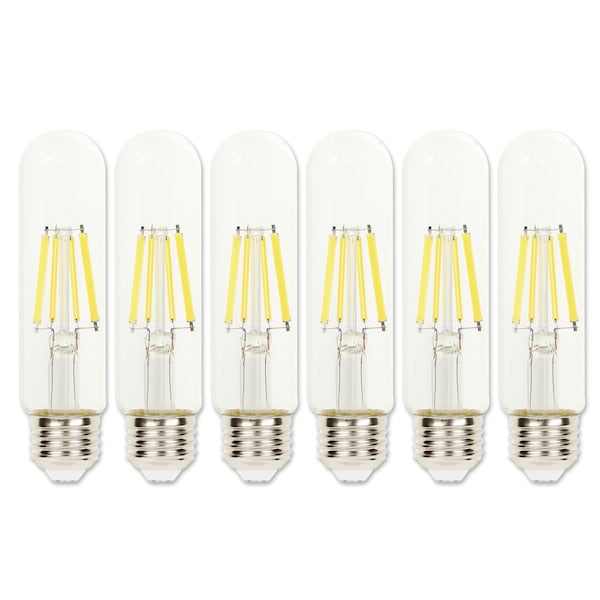 - Bulb Description: 6-Pack, dimmable, decorative T10 LED bulb, E26 medium base, clear finish, approved for wet locations and enclosed fixtures
