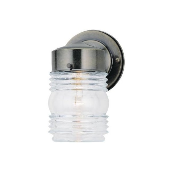 Single Lamp Jelly Jar Wall Fixture, Antique Brass Finish, Outdoor, Clear Fluted Glass Shade, With 314 Fitter, Width 412, Height 8, Extends 5, Uses 1 Bulb, 75W Maximum