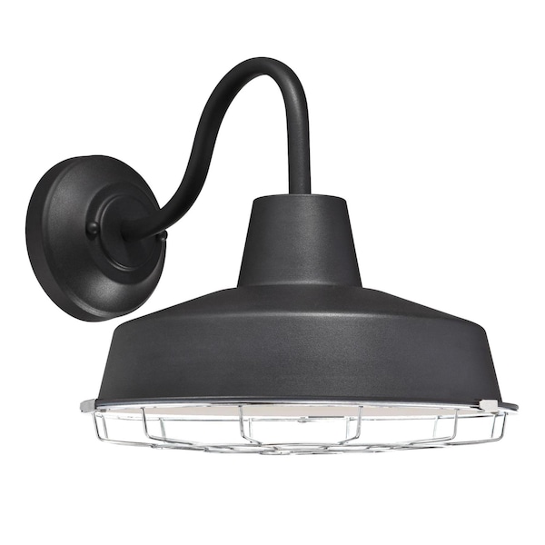 Bring vintage-industrial style to your home's exterior with the Westinghouse Academy Outdoor Dimmable LED Wall Fixture. It features a vintage-style design finished in textured black, a removable nickel luster cage, and is Dark Sky Friendly to minimize light pollution and protect the night sky. The fixture includes a 15-watt integrated LED, providing long-lasting, energy-saving illumination for your front or back entryway, porch, deck, or balcony. Durable craftsmanship and LED technology ensure energy-saving style and enduring beauty from this outdoor wall fixture. Product reference number 61313.