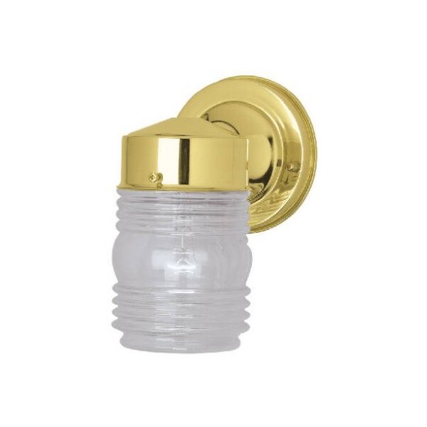 Single Lamp Jelly Jar Wall Fixture, Polished Brass Finish, Outdoor, Clear Fluted Glass Shade, With 314 Fitter, Width 412, Height 8, Extends 5, Uses 1 Bulb, 75W Maximum