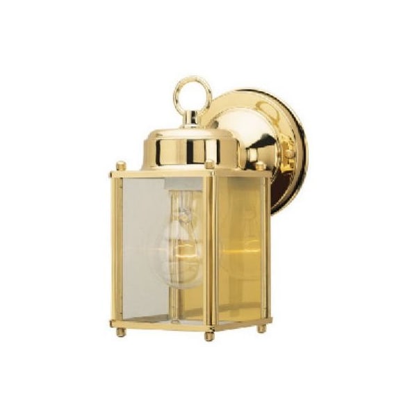 Single Light Square Wall Lantern, Polished Solid Brass Finish, Clear Glass Panels, Width 418, Height 814, Extends 512, Uses Bulb A19, 100W Maximum Or Torpedo, 60W Maximum