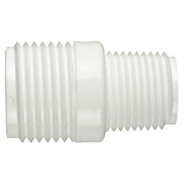 Garden Hose Adapter, Rigid, For Hose I.D. 3/4 in, Hose Fitting A Gender Male, Hose Fitting B Gender Male, Hose Fitting A Size 3/4 in, Hose Fitting B Size 1/2 in, Hose Fitting A Connection Type GHT, Hose Fitting B Connection Type NPT, Fitting Material PVC x PVC, Overall Length 1 3/4 in, Number of Outlets 2, 150 psi