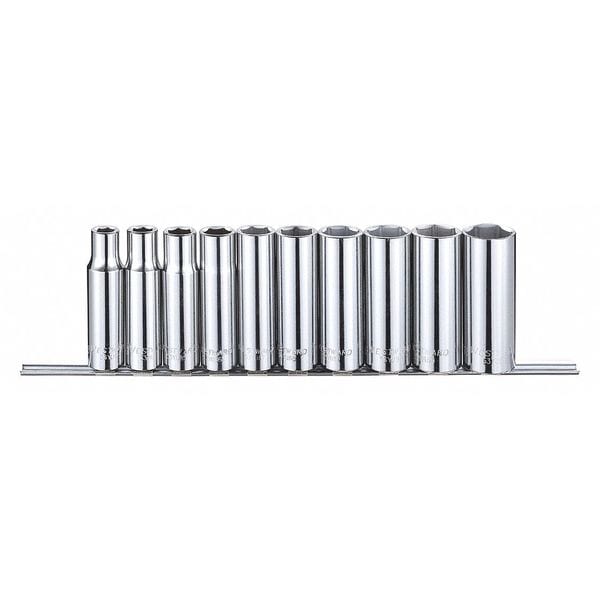 Socket Set, Standard Socket Count/Style None, Deep Socket Count/Style (10) 6-Point, Deep Socket Style/Size Deep 6-Point: 1/2 in, 11/16 in, 13/16 in, 15/16 in, 3/4 in, 3/8 in, 5/8 in, 7/16 in, 7/8 in, 9/16 in, Flex Socket Count/Style None, Hand, Drive Size 1/2 in, SAE, 6-Point, Chrome
