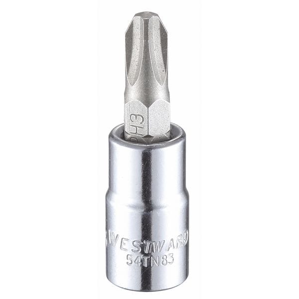 Socket Bit, Insert Length 5/8 in, Replaceable Insert No, SAE, Tip Size #3, Tip Style Phillips, Overall Length 1 1/2 in, Drive Size 1/4 in, Socket Depth Standard, For Screw Type Phillips, Alloy Steel