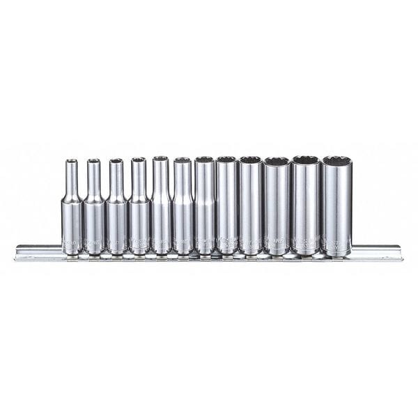 Socket Set, Standard Socket Count/Style None, Deep Socket Count/Style (12) 12-Point, Deep Socket Style/Size Deep 12-Point: 10 mm, 11 mm, 12 mm, 3.5 mm, 4 mm, 4.5 mm, 5 mm, 5.5 mm, 6 mm, 7 mm, 8 mm, 9 mm, Flex Socket Count/Style None, Hand, Drive Size 1/4 in, Metric, 12-Point, Chrome