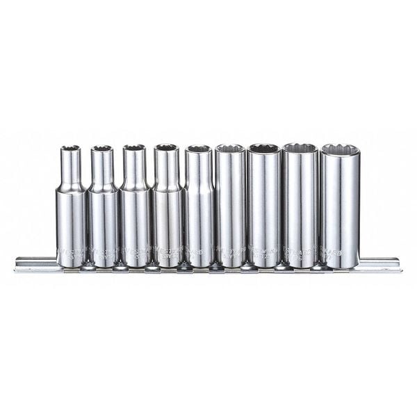 3/8" Drive Socket Set, SAE, 9 Pieces, 1/4 to 5/8 in, Chrome, 12-Point