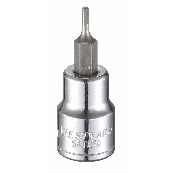 The WESTWARD - 54TL70 Bit Socket is a standard socket bit designed for hex screw types. With its metric measurement type, it features a size of 2mm and a tip size to match. The insert length measures at 3/4 inches while the overall length comes in at 1 3/4 inches, making it suitable for various applications requiring precision and control. This socket bit also boasts a drive size of 3/8 inch and adheres to ASME B18.3.2M-1979 standards.