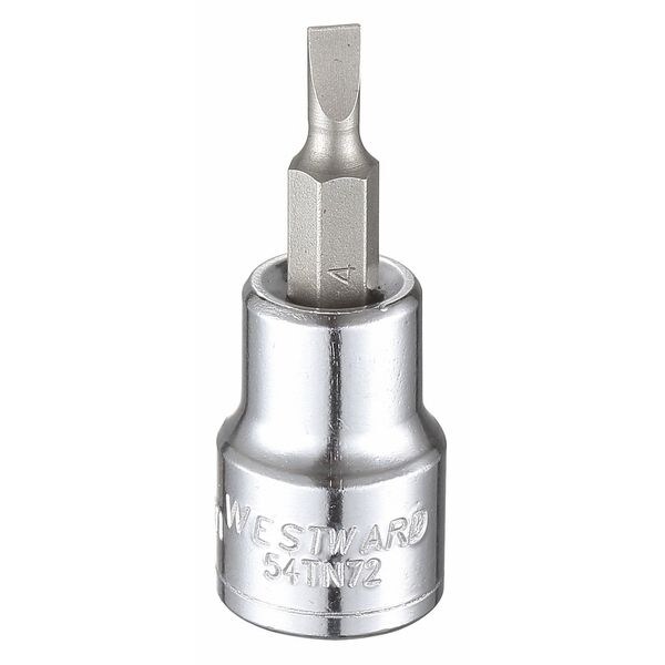 This Westward 54TN72 4 mm Socket Bit is a durable tool that will stand up to the rigors of the job. It features an alloy steel construction, which makes it strong and resistant to wear and tear. The tip size measures 4mm, while the overall length is 1 3/4 in. This bit socket has a 2-point category type and a slotted bit style. It also has a 3/8 in drive size and a slotted socket type. The Westward 54TN72 Socket Bit is ideal for all your general purpose jobs around the house or on the job site.