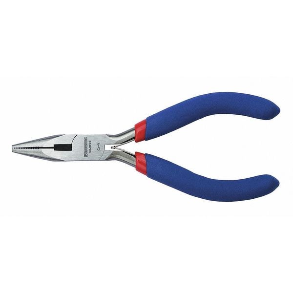 Needle Nose Plier, Plier Type Needle Nose Pliers, Jaw Bend 0 Degrees , ESD-Safe No, Overall Length 4 7/8 in, Maximum Jaw Opening 3/4 in, Jaw Length 1 1/8 in, Tip Width 1/4 in, Insulated No, Non-Sparking No, Voltage Rating Not Rated, Cutting Capacities Not Specified, Handle Color Blue, Handle Style Dipped
