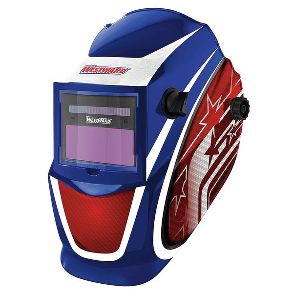 Auto Dark Welding Helmet, Shade 4, 9-13, Blue/Red/White