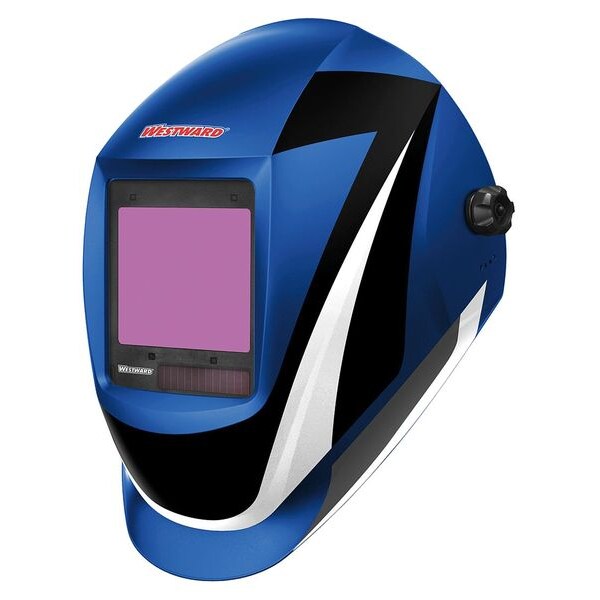 Welding Helmet, ADF Controls Analog, Battery Chemistry Lithium Ion, Battery Life 2,500 hr, Battery Type CR2450, Color Graphics, Compatible Suspension Brand Name Westward, EN379 Classification 1/1/1/2, Features 5 pt Adjustment Headgear with Removable Sweatband, Low Battery Alarm, Test Button Allows Test If The Auto Darkening Lens is Darkening Properly, Graphics Black/Blue/White, Grind Mode Yes, Helmet Material Nylon, Helmet Type Auto-Darkening, Helmet Width 26 cm, Includes Extra Front Cover Lens