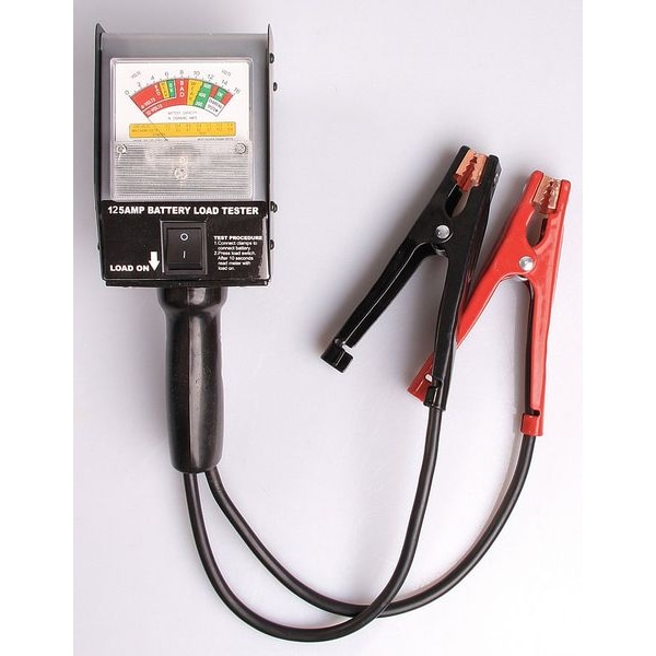 Battery Tester, Product Type Battery Tester, Overall Width 4 in, Overall Height 10 3/4 in, Overall Depth 4 1/2 in, Batteries Tested 12V, 6V, Load Amperage 125 A, Maximum Input Voltage 16 V DC, Minimum Input Voltage 0 V DC, Maximum Cold Cranking Amperage 500 A, Minimum Cold Cranking Amperage 300 A, Display Type Analog, Number of Test Leads 2, Includes Tester Batteries No, Digital Display Screen Type No Display, Tester Battery Voltage Not Applicable