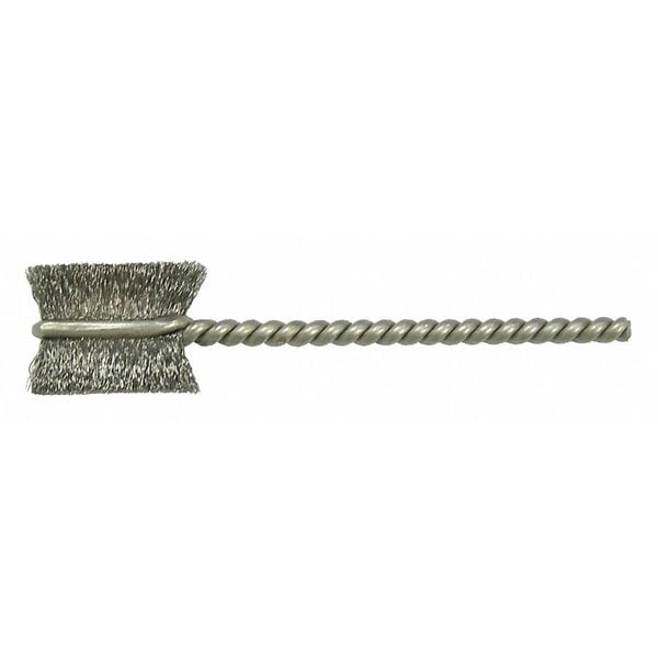 Burrite Tube Brush, Product Type Single Spiral Tube Brush, Stem Style Single, Brush Material Stainless Steel, Brush Dia. 3/8 in, Compatible Tube Outer Diameter Not Applicable, Stem Diameter 3/32 in, Brush Length 9/16 in, Wire Dia. 0.005 in, Overall Length 2 1/8 in, Compatible Tool Type Drill, Operating Speed - Maximum 1,900 RPM, Package Quantity 10