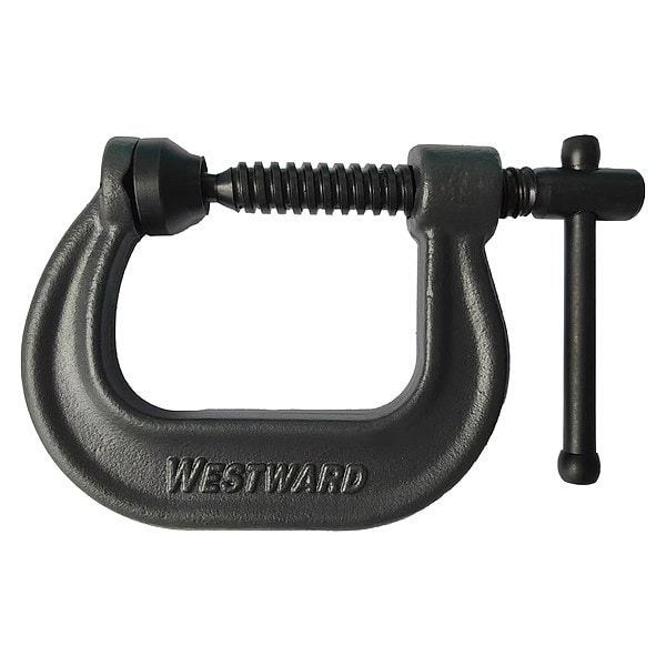 C-Clamp, Jaw Pad Type V-Grooved, Includes Swivel Pad Yes, Jaw Opening - Maximum 2 in, Jaw Opening - Minimum 0 in, Throat Depth 2 1/4 in, Clamping Force 3,300 lb, Body Material Forged Steel, Body Color Gray, Spindle Finish Black Oxide, Spindle Material Steel, Handle Type Sliding T, High Visibility No, Number of Anvils 1, Number of Spindles 1, Release Mechanism Standard Thread, Body Finish Powder Coated, Standards No, Throat Shape Standard