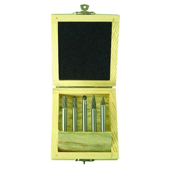 Carbide Bur Set, Dbl Cut, 1/4 In, 5 Pcs