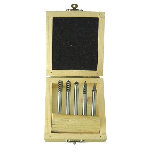 Carbide Bur Set, Single Cut, 1/4 In, 5 Pcs