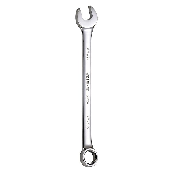 The Westward 54RY84 Combination Wrench is the ideal tool for getting a firm grip on fasteners. The alloy steel construction means it is durable and reliable. The alloy steel wrench has a one piece handle, ensuring it will last for years to come. With a 25mm head size and 6 pt., this metric combination wrench gives you greater control over your work. Its chrome finish provides rust resistance, allowing you to use it in damp conditions without worry. If you are looking for an alloy steel combination wrench that will meet all of your needs, then look no further than the Westward 54RY84 Combination Wrench.