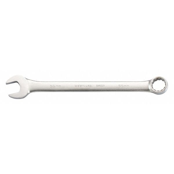 Combination Wrench, Alloy Steel, Satin, Head Size 55 mm, Overall Length 26 3/8 in, Head Offset Angle 15 Degrees , Opening Angle (Deg.) 15 Degrees , Offset, Head Thickness 1 1/16 in, Metric, Rounded