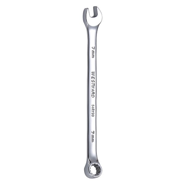 Universal Combination Wrench, Alloy Steel, Chrome, Head Size 7 mm, Overall Length 4 7/8 in, Head Offset Angle 15 Degrees , Opening Angle (Deg.) 15 Degrees , Offset, Head Thickness 1/4 in, Metric, Rounded