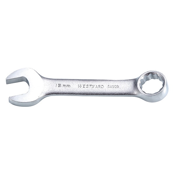 Combination Wrench, Alloy Steel, Satin, Head Size 15 mm, Overall Length 4 5/8 in, Head Offset Angle 15 Degrees , Opening Angle (Deg.) 15 Degrees , Offset, Head Thickness 3/8 in, Metric, Rounded