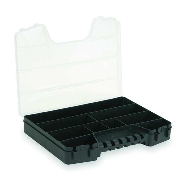 Compartment Box, Closure Type Double Latch, Color Black, Electrostatic Discharge Not Electrostatic Discharge Conductive, Material Plastic, Maximum Number of Compartments 9, Number of Adjustable Dividers 0, Overall Height 2 1/4 in, Overall Length 10 3/8 in, Overall Width 13 1/2 in, Includes Handle Handle Included, Shape Rectangular