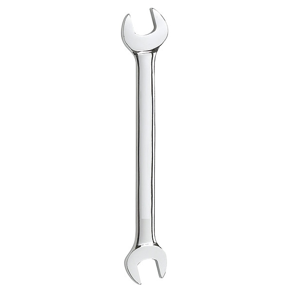 Open End Wrench, Alloy Steel, Satin, Head Size 21 mm, 23 mm, Overall Length 10 1/4 in, 15 Degrees , Head Thickness 9 13/32 in, Insulated No, Metric, Double End, Rounded, One Piece