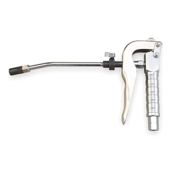 Grease Control Valve, Features Boosts Line Pressures Built In Relief Valve for Releasing High Greasing Pressure Enabling Easy Disconnect of the Grease Coupler from the Zerk Fitting, For Use With Air Operated Grease Pumps, For Volume Greasing Applications On Shop Floor And Garages, Includes Extension Fitted with Coupler without Ball Check, Pressure Relief Valve, Max. Operating Pressure 10,000 psi, Inlet Size 1/4 in