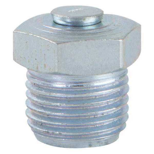 Grease Fitting, Grease Fitting Style Pressure Relief, Fitting Material Steel, Fitting Finish Zinc-Plated, Fitting Head Angle Straight, Fitting Thread Size 1/8 In.-27, Fitting Thread Type PTF, Overall Length 1/2 in, Relief Pressure Min. 1/4 psi, Relief Pressure Max. 1 psi, Package Quantity 10