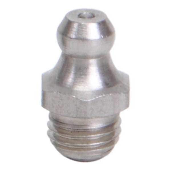 Grease Fitting, Grease Fitting Style Standard, Fitting Material Steel, Fitting Finish Zinc-Plated, Fitting Head Angle Straight, Fitting Thread Size 1/8 In.-27, Fitting Thread Type PTF, Overall Length 1 1/4 in, Max. Pressure 5,000 psi, Meets/Exceeds SAE J-534-C, Package Quantity 10