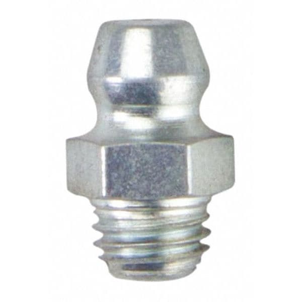 Grease Fitting, Grease Fitting Style Standard, Fitting Material Steel, Fitting Finish Zinc-Plated, Fitting Head Angle Straight, Fitting Thread Size 1/4 In.-28, Fitting Thread Type SAE-LT, Overall Length 1/2 in, Max. Pressure 6,000 psi, Meets/Exceeds SAE J-534-C, Package Quantity 10